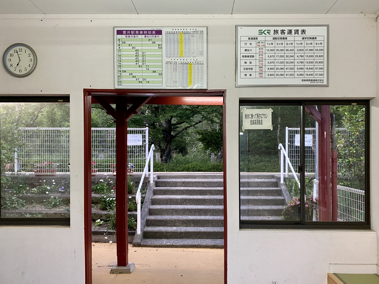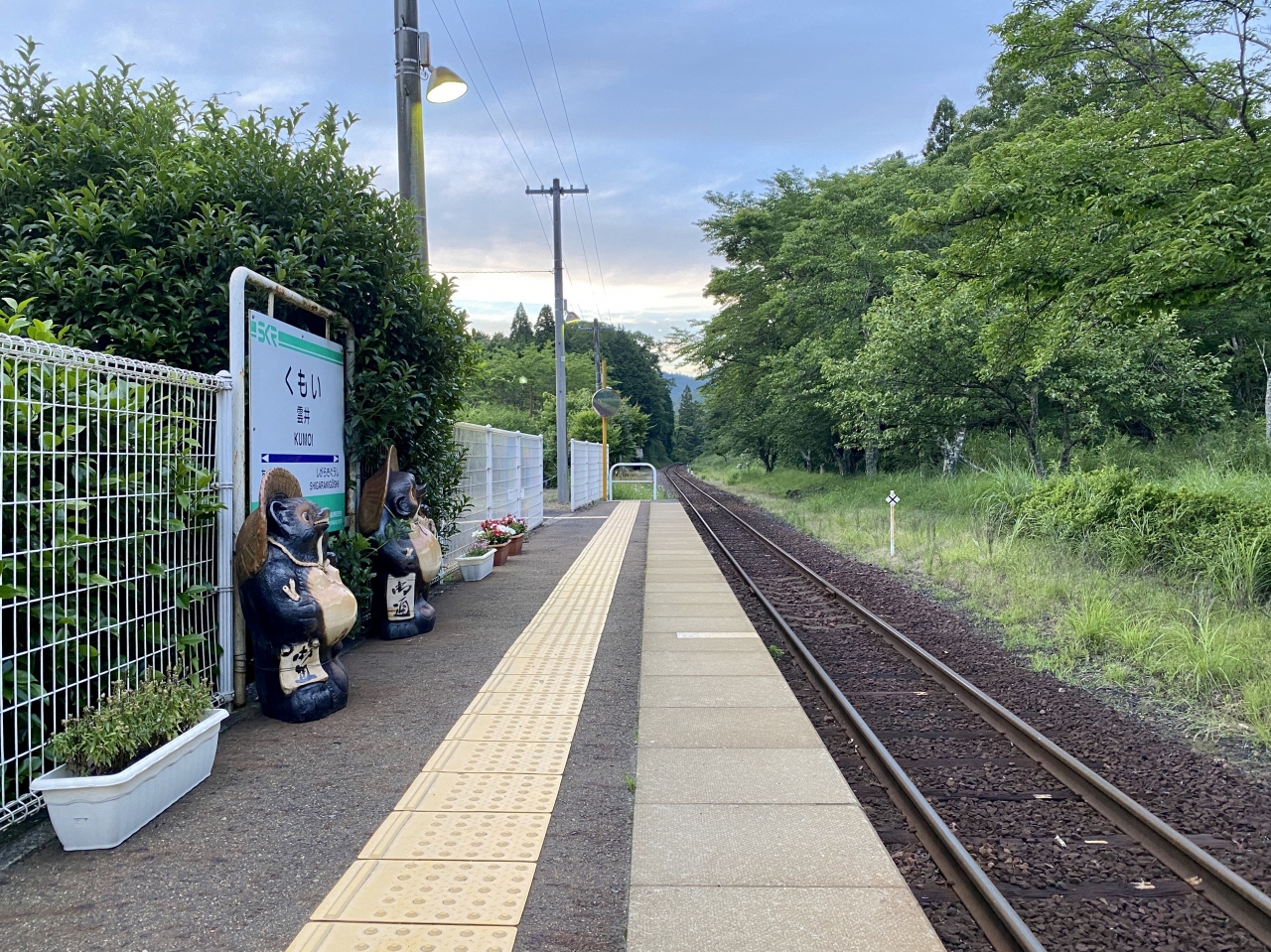 開業当時からある駅舎を手入れをしながら使っているためにバリアフリー化はされてはおらず、ホームへは階段を利用するようになっていた。ホーム側駅舎入口にはだいぶ年期の入った〝タヌキくん〟が利用者を迎えている。〝おはよう〟〝おかえり〟、何気ない言葉であるが、この文字を見た子供達が育っていった事実を思うと胸が熱くなった私であった。- 旅行時期