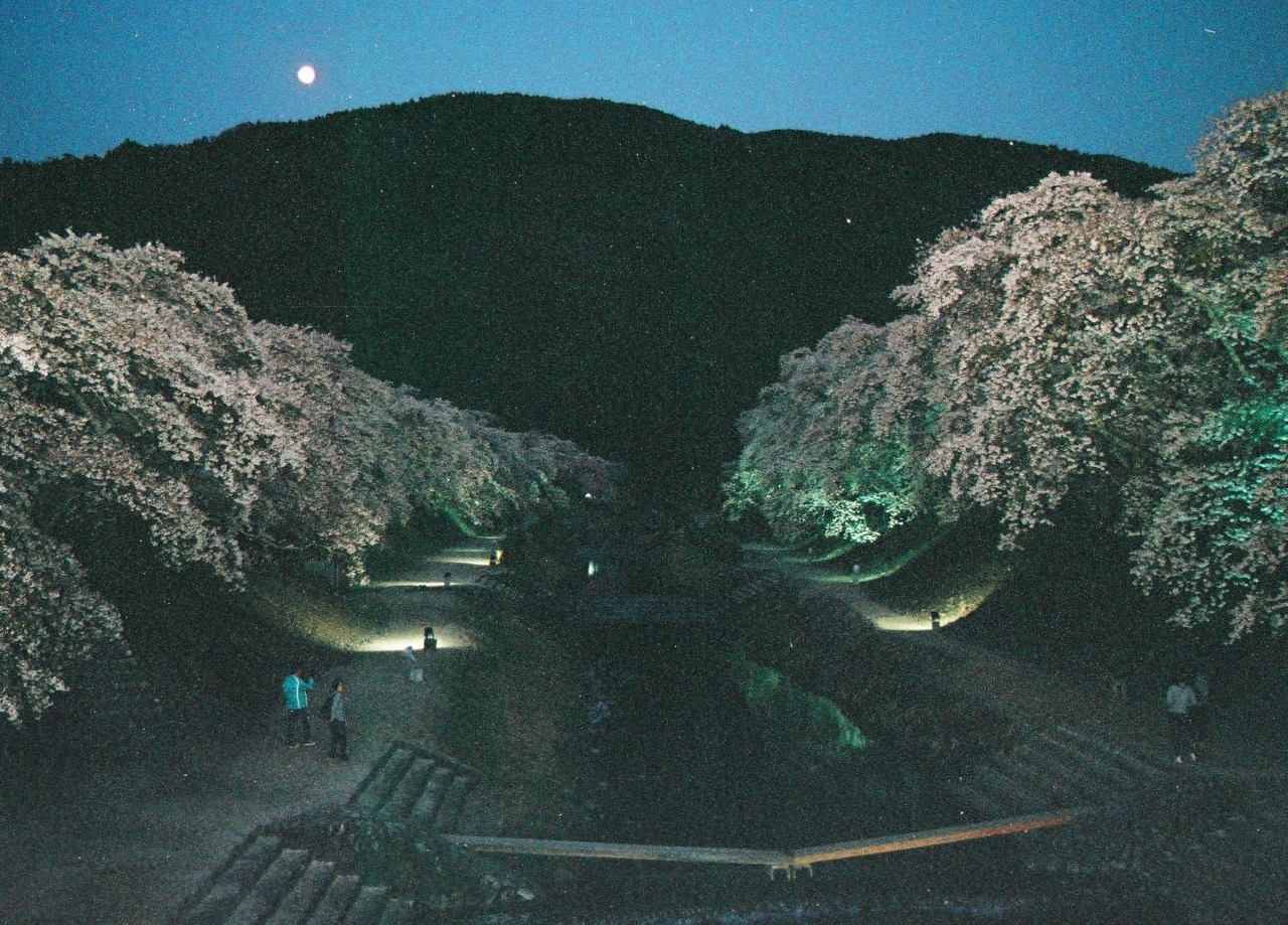 細かいところは雑に見える場所はあったとしても、青戸ダムを含めた鈴鹿山系を背景に咲く桜の花はまさに絶品。おまけにライトアップが始まると、桜の海に浮かぶ月とのコラボは邪魔する光源もなく神秘的にすら見えるものでした。
