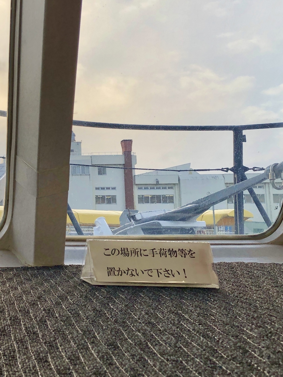 割引購入したチケットは1A・1B、最前列の座席ですがそれより最初のチケット購入者か?と笑いそうになりました。フェリーには乗船というのにジェットフォイルは搭乗という。理由はよくわかりませんが〝ボーイング929〟の形式名からかな?とも思います。
