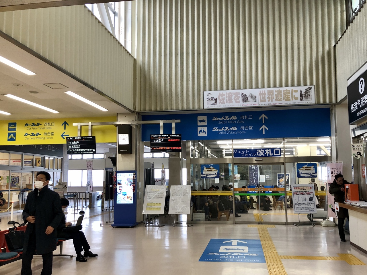 施設としてはチケット売場と乗船・搭乗口というものは新潟港と同じですが、やはり観光客相手の土産物屋ははるかに両津港の方が多かったです。