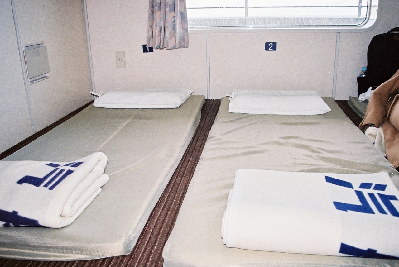 一等いす席が満席だったので一等じゅうたん席に変更し、指定された場所(ふとん)で佐渡を目指しました。時化の海を航行するのでその旨は船内で連呼されていましたが、それ程の揺れはなく、寝不足で疲れた体を横になって休めることもできました。