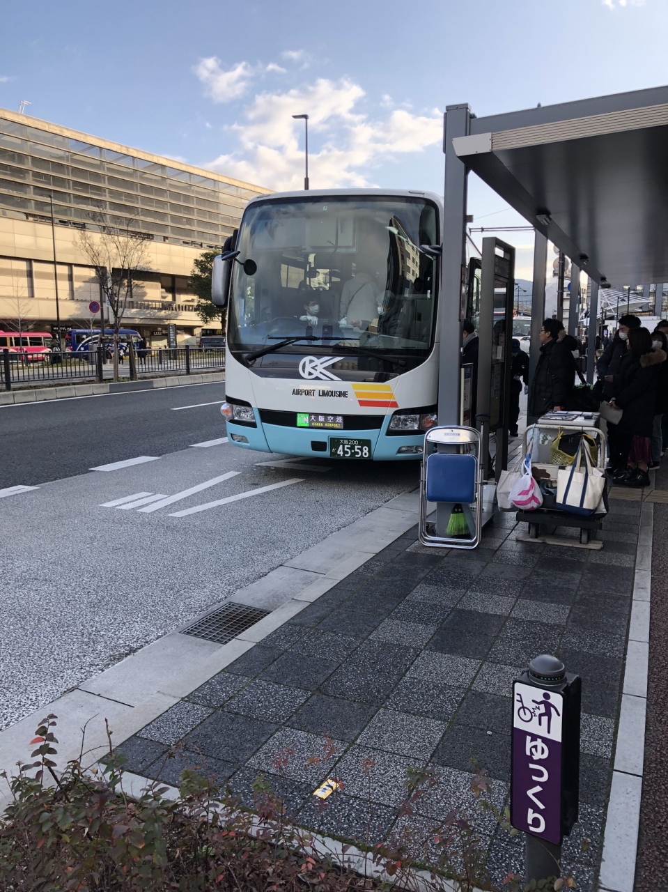 最近よく利用している大阪伊丹空港は、京都からリムジンバスで55分で着くことができます。朝の時間帯に乗車し、一部渋滞に巻き込まれても、大幅に遅延することもありません。