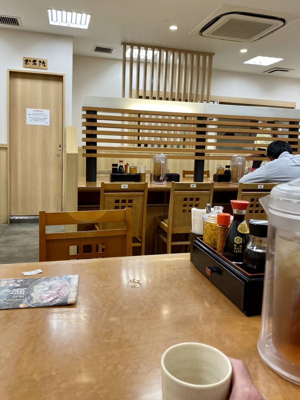 システムは家近のお店と全く一緒、メニューも同じものを注文しました。備え付けの冷たい麦茶は、天気が良い中を歩いていたのでそれなりに喉が渇いていたので美味しく頂けました。出てきたお料理も代わり映えはないものの背伸びも緊張することもなく美味しく頂き、久しぶりにご飯のおかわりまでしてしまいました。カウンターとテーブル席はありますが店内そのものは大きくはなく、人の出入りが激しいとゆっくりすることはできないと覚悟はしていましたが、そんな慌ただしさもなく、食後に一息つけるほど寛げました。