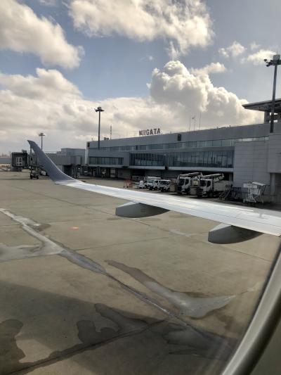 低気圧の接近中で伊丹空港離陸直後はかなり揺れましたがその後は収まり、新潟までの1時間のフライトは快適でした。