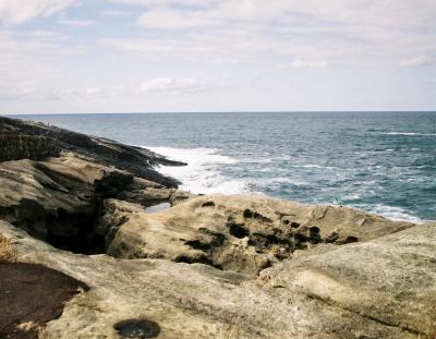 佐渡島一周ドライブの最中に休憩を兼ねて立ち寄りました。荒波にもまれた結果岩が侵食されて奇景を呈している場所は沢山ありますが、平根崎の波蝕甌穴群はその極地といった所だろう。