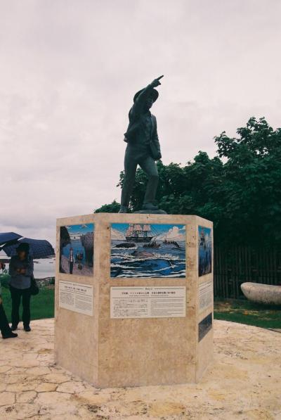 長崎を経て土佐へと戻った万次郎の功績を今更言うまでもないが、日本再上陸となった場所が沖縄島南部糸満の浜であった。シュノーケリングのメッカとしても有名な場所にはジョン万ビーチという命名はされてはいたが、平成30(2018)年2月18日になってやっと〝ジョン万次郎上陸記念碑〟が建立された。アメリカンスタイルの万次郎が指さすのは故郷の土佐清水市、あまりにも出来過ぎた像であるようにも思えるもののその〝場所〟がやっとすぐわかるようになったことには素直に〝教えてくれてありがとう〟の気持ちになれるのではないかと思った。- 旅行時期