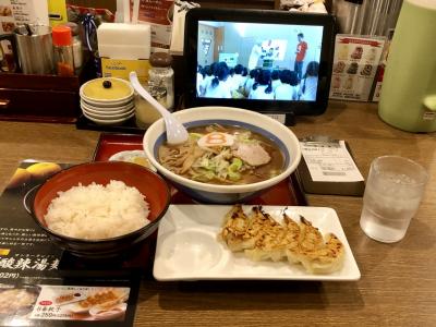 オーダーは8番セット(醤油)+ライス中、ラーメン・餃子・ライスとセットすれば十分なボリュームがありました。