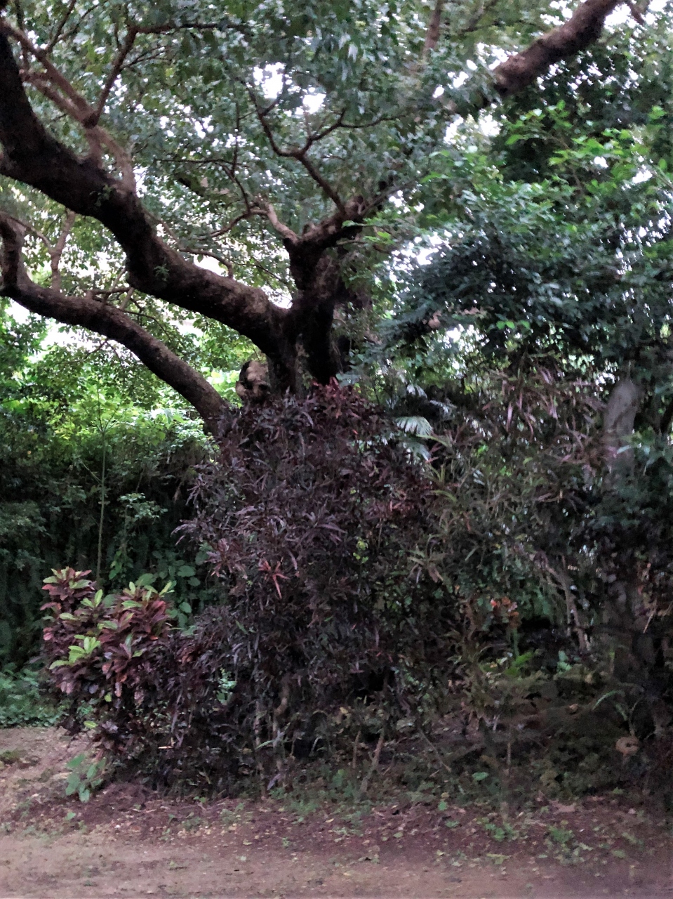 大アカギの木々が醸し出す〝特別な場所〟内金城嶽。どちらがメインなのかはともかく、その木々の威力に圧倒されてしまい、内金城嶽の姿を撮り忘れる失態をしてしまいました。昼間に訪れるのも良いとは思いますが、少し暗くなってから訪れると神秘感が一層増しているように思える場所には違いありません。- 旅行時期