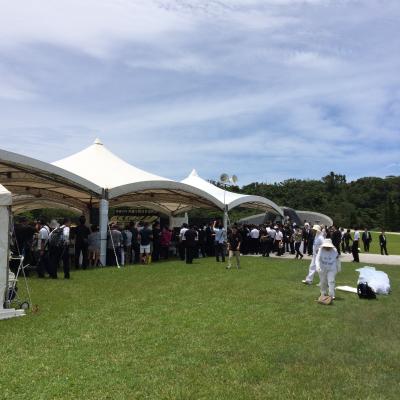 - 平和祈念公園で行われています。当日はシャトルバスで会場入りしなければなりません。