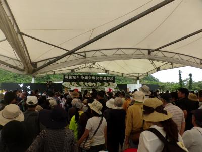 5年連続となる沖縄戦全戦没者追悼式に外野参加しました。30年ぶりに梅雨明けしていない慰霊の日でしたが、公式発表されているテント下に入っている参加者数は変わらないもの、私をはじめとする外野での参加者数は格段に少なかったはず。