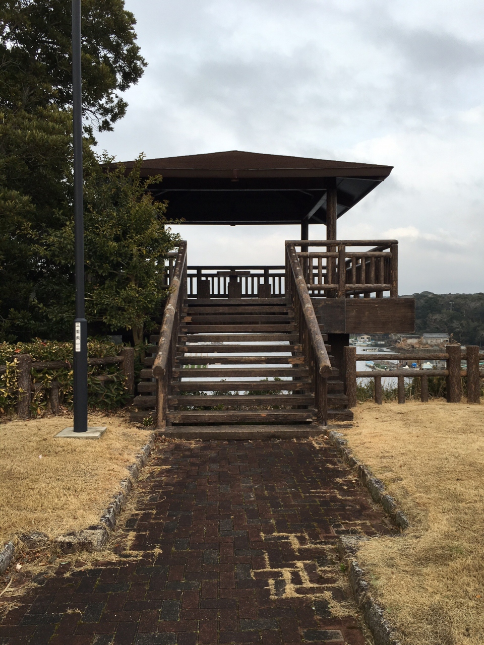 小規模の公園ではありながら、トイレ等も清掃が行き届いており快適に利用できましたし、自動販売機も品切れもなく細かなケアがされています。そして小さな展望台を登り切ると、そこには英虞湾と真珠養殖の筏が広がるなんともいえない景色を堪能することができます。