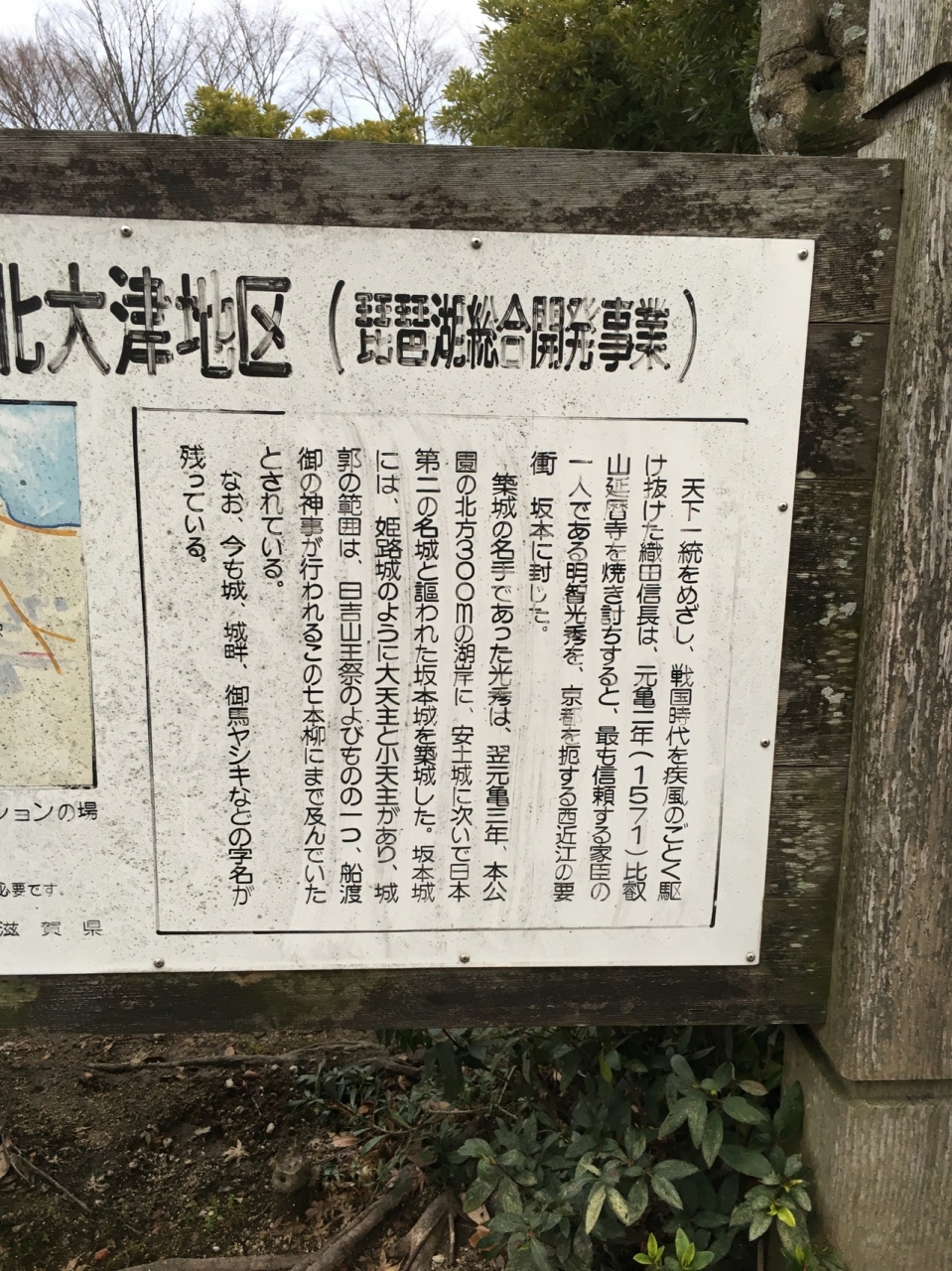琵琶湖西岸の坂本の地に城が築かれたのは元亀3(1571)年織田信長の比叡山焼き討ちの後、配下の築城の名手明智光秀によって築かれたました。比叡山と京の都の抑えとしての役割と、琵琶湖を下る物資の管理等を行うべく作られたようです。