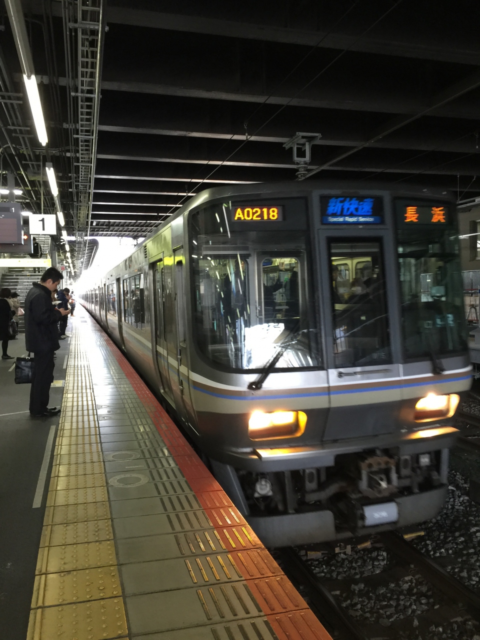 東海道本線・山陽本線・赤穂線・湖西線・北陸本線に跨る区間を走る新快速は、最高時速130km/hを誇る関西エリアの狭軌区間(線路幅1,067mm)の最速列車です。我が街石山は田舎であれど古くから新快速の停車駅として、少し優越感を持っていた時期もありました。特別料金が必要ない電車としては日本最速のものであり、JR西日本が誇る韋駄天列車としても有名です。