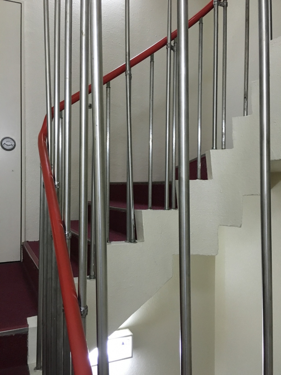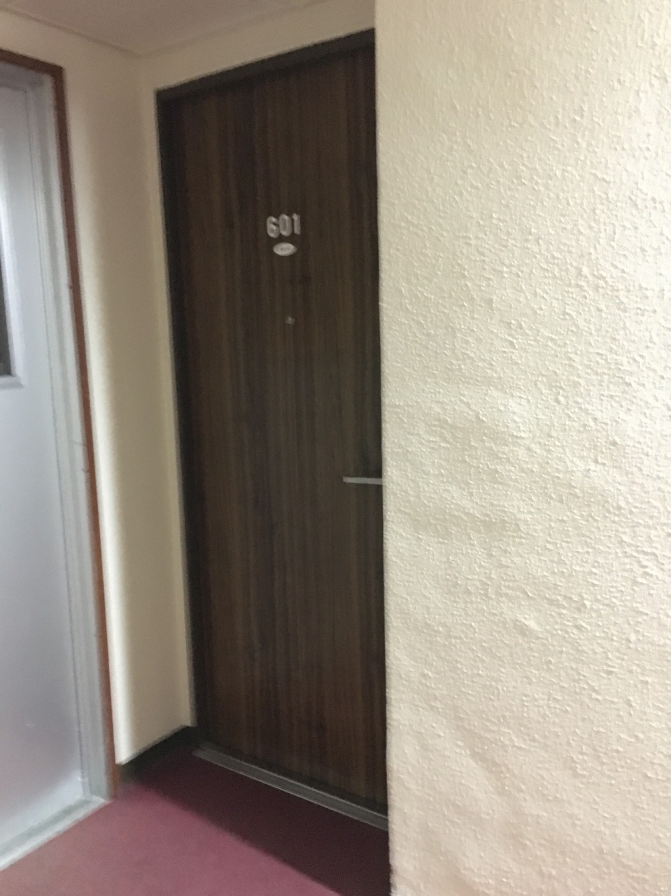 6階の601号室シングルルームを利用しましたが、部屋からの眺望はスマイルホテルが見える程度ですが、非常口からはクルーズ船埠頭に停泊する船を間近に見ることができます。