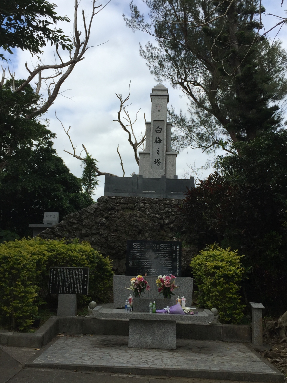 白梅之塔は、沖縄戦に於いて第 24 師団 第一 野戦病院 (山3486部隊) に従軍補助看護婦 として配属となった沖縄県立第二高等女学校四年生で編成された?白梅学徒隊?や学校職員・同窓生の沖縄戦に於ける戦没者130余名を祀る慰霊塔です。