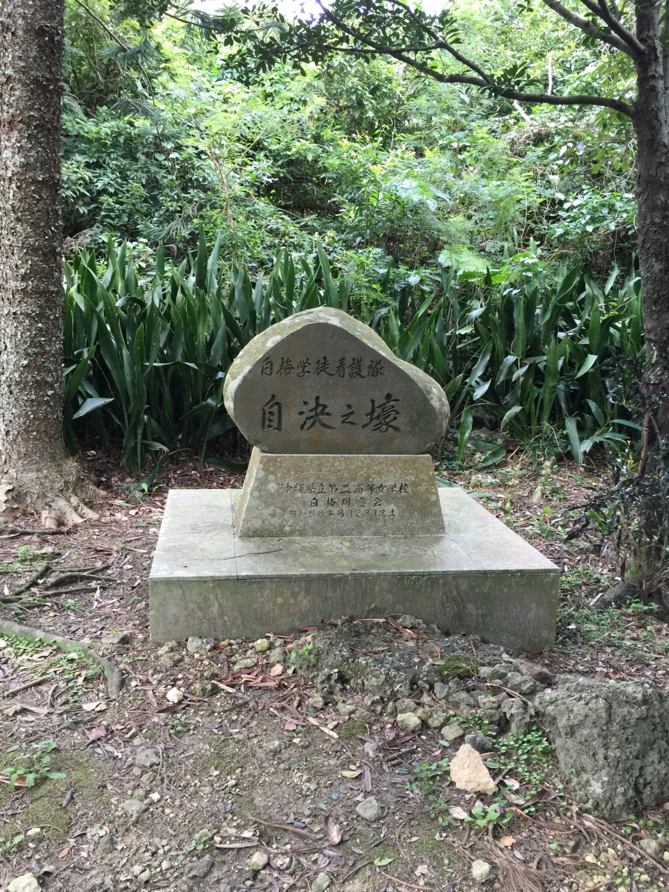 戦況が悪化の一途を辿った6月4日、第24師団第一野戦病院は南部への撤退命令を受け、その際白梅学徒隊は解散命令を受けることになります。数人のグループに分かれて南部へと撤退するものの、その道中に8名の犠牲者を出します。そして国吉に 国吉に後退した第24師団第一野戦病院壕に迎えられて勤務を続けていた生徒たちも米軍の馬乗り攻撃の標的や手榴弾自決等によって白梅自決の壕で6名、上の壕で2名と、全身火傷を負った1名が米軍病院にて死亡。46名の生徒のうち17名が戦死されました。