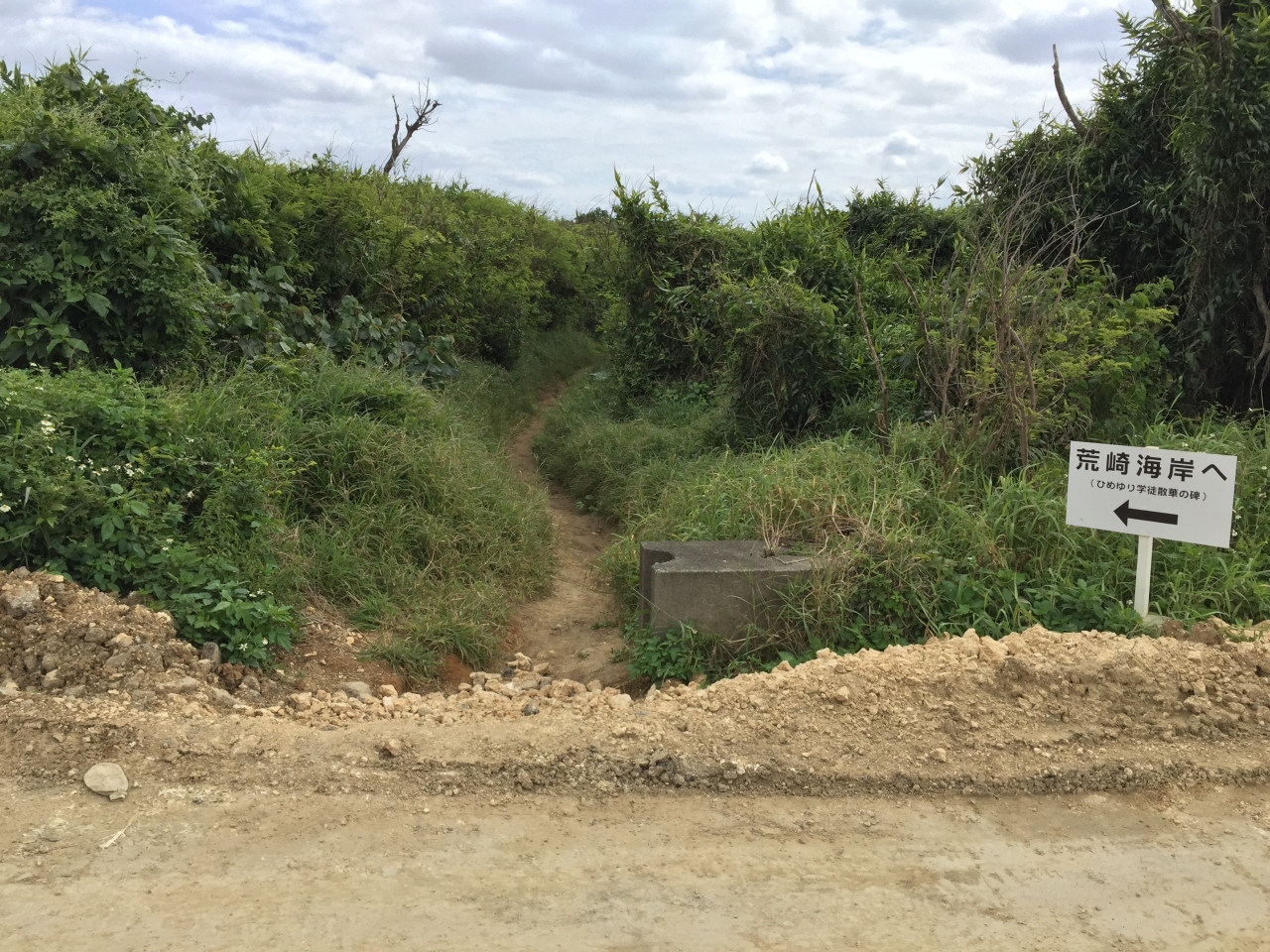 この?ひめゆり学徒散華の跡?への行き方がややこしい道の方を書かれているようなので訂正します。米須(西)交差点より魂魄之塔を経て平和創造の森公園へと向かいます。東京之塔がありますので、その前の駐車場から平和創造の森公園の外周道路を進んで行くと、道が大きく右に曲がっているためそれを左折します。?資材置場・駐車禁止?と書かれている未舗装の砂利道をしばらく走ると?ひめゆり学徒散華の跡(荒崎海岸)?と書かれている看板があります。ここから歩いて10分程ですが、一部岩場に切られた階段とモルタルを流し込んだだけの岩場の道を歩かないとならないため、サンダル履きでは危険なところもあります。通路自体は参拝者が残した?土?が点々と残っているため迷うことはありません。なお砂利道は多分地元の業者さんが埋めてくれているところはあるものの、自転車ではパンクの可能性があり、お勧めは致しません。- 旅行時期