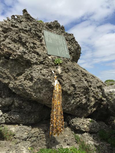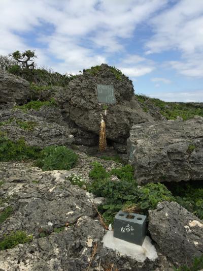 昭和20(1945)年6月19日第32軍司令部の学徒隊解散命令を受け、山城陸軍病院壕を出たひめゆり学徒やその引率教諭、将兵の20余名は砲弾が飛び交う中この荒崎海岸へとやってきました。しかしその岩場の先には海を埋めつくす数の米軍戦艦が駐留し、先にも進めず後ろにも戻れない状況下で岩陰に身を潜めていました。そこにやって来た米兵の投降を呼び掛ける勧告にも耳を貸す余裕もなかったようです。手榴弾を投げようとした兵士は撃たれて負傷、十分とはとても言えない岩陰おも取り囲まれてしまいます。そして米兵による機銃掃射の結果その場はパニックとなり、銃弾に倒れる者、手榴弾で自決を図る者と修羅場と化します。結果県立第一高等女学校教師3名、生徒8名、卒業生1名と高等師範学校女子部生徒3名、県立第二高等女学校生徒1名が犠牲となり、助かったのは手榴弾を米兵に取り上げられた2名だけだったそうです。