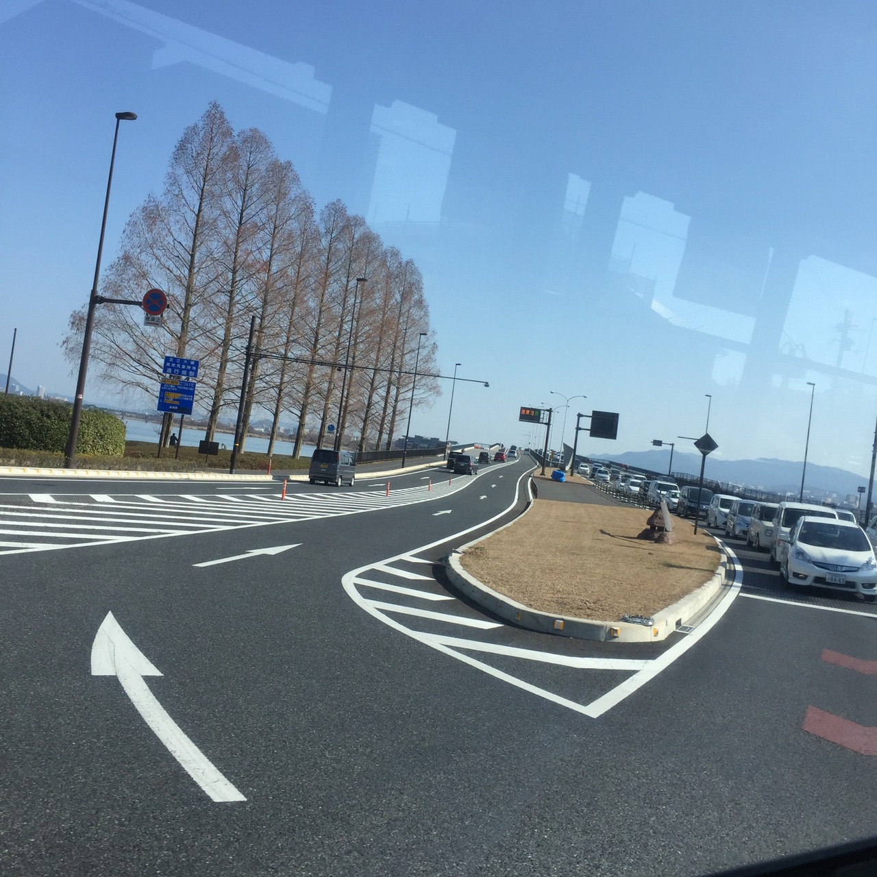 開通時よりいずれは無料化されると言う話だったものの諸事情により延期が続き、平成25(2013)12月26日にやっと無料化されました。有料時は迂回ルートを取っていた車が近江大橋を通るようになり、渋滞は避けて通れない現実となっています。また草津側にイオンモールがオープンし、取付道路から直接駐車場に入る車で左側車線が渋滞する上、気付かずに本線を走ってきた車がその車列に割り込もうと停止するため、後車が先に進めなくなることも珍しくありません。
