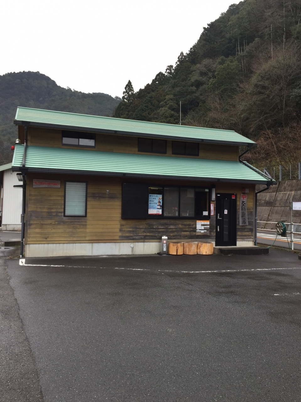 国道42号線三重県熊野市飛鳥町にある大又簡易郵便局は、昨年まで道の駅熊野きのくにの中にある郵便局として知られていました。熊野街道である国道42号線は、東回りルート(尾鷲)で紀伊半島を巡るには欠かすことのできない通り道でした。個人団体旅行問わず通り道であった往時、その休憩地点として道の駅熊野きのくには大変な賑わいを見せていたそうです。