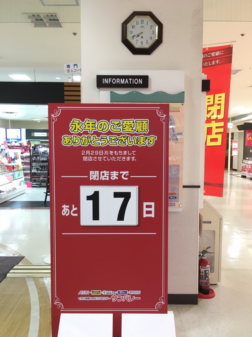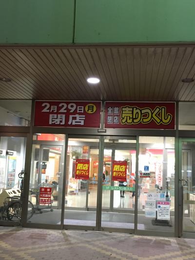 今回の来店目的は夕食を摂るためですが、入口にはよく見かける?閉店セール?の標記がされていました。てっきり改装されるものとばかり思っていましたが、本当に閉店されるとのこと。昭和53年に当時のジャスコとしてオープンした歴史あるショッピングセンターではあったものの、昨今話題にのぼる耐震強度の問題に引っ掛かり閉店を余儀なくされたようです。