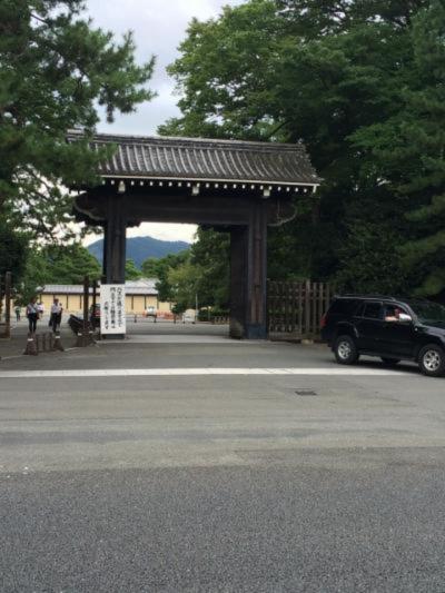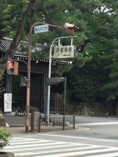 烏丸通りに面する4つの御門のうち北から2番目の中立売御門は、烏丸中立売交差点に位置しています。御門を潜ってすぐのところに駐車場とトイレ、休憩所が揃っており、京都御苑を訪れる団体客の利用も多いところでもあります。