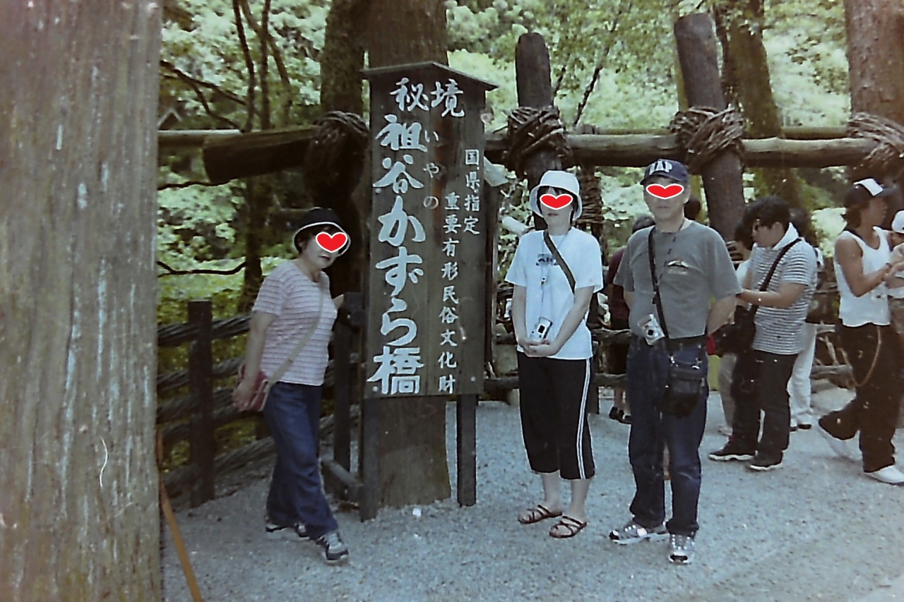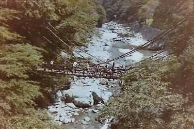 文字通りのかずら橋は、平家の落人がこの地に来たときに追手が来てもすぐに切り落とせるものとして作ったという説があります。確かに人が一人渡るだけでもギシギシ鳴るは揺れるはとスリル満点です。重要有形民俗文化財に指定されていますが、材料の太いかずらが取れなくなりつつあります。なんとかして後世に伝えて欲しいと改めて思います。