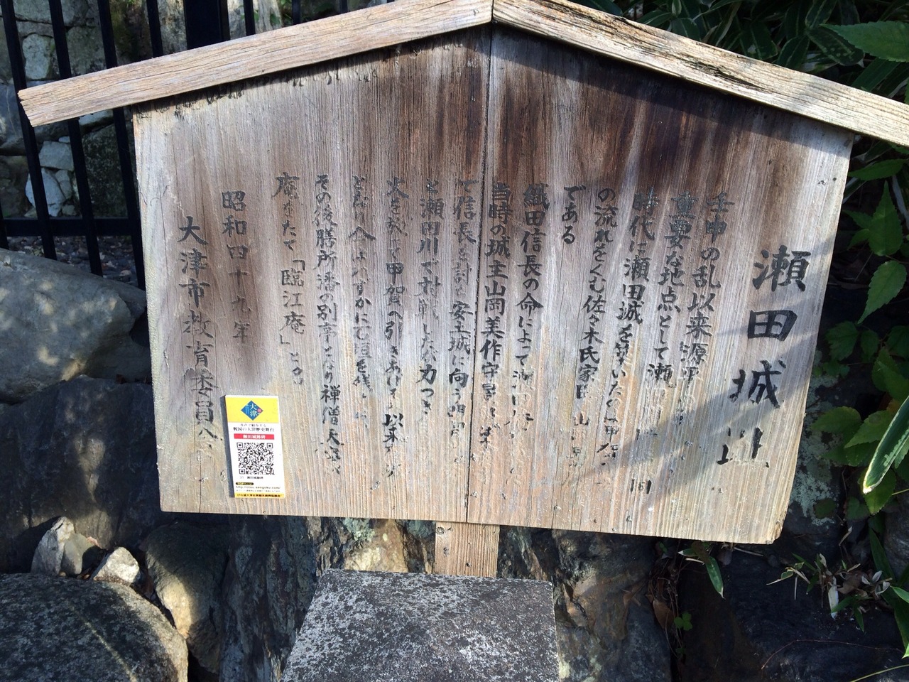 残念ながら時代の流れで臨湖庵跡にあった料亭もなくなり、今では臨湖庵と言う名前の高層マンションが建っています。唯一瀬田城址を示す石碑が残るのみで、かつこの場所は見通しの悪いカーブの途中にあるため、ゆっくり歴史に浸る間もありません。しかし石碑から少し南にずれると瀬田の唐橋がはっきり見ることができます。安全な場所から両方向を見ることで、戦国の時代を駆け抜けた景隆を偲ぶのも良いかも知れません。- 旅行時期