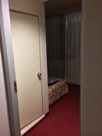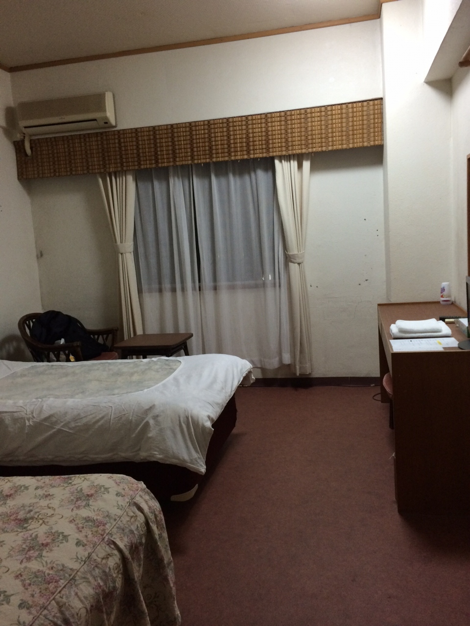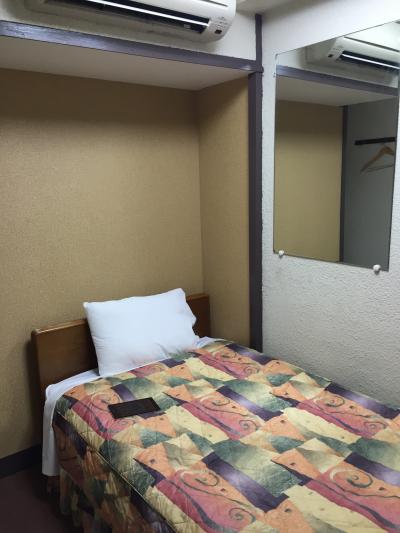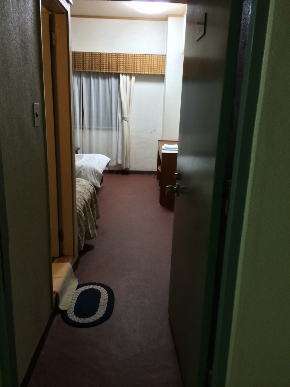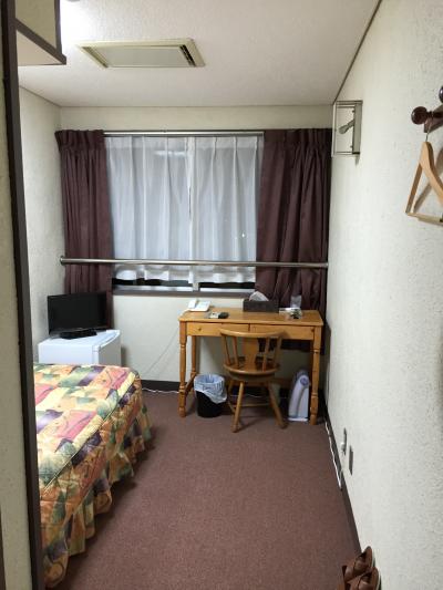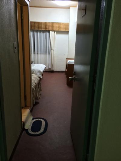 駐車場からフロント、そして客室へは階段があります。部屋は年期の入ったビジネスホテルのシングルルームと言ったところでしょうか。しかし古ぼけてはいるものの清掃はしっかりされており、綺麗な部屋でした。