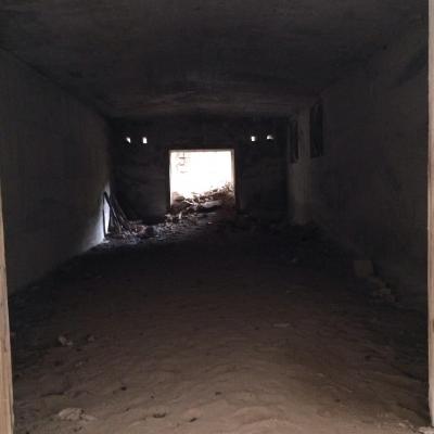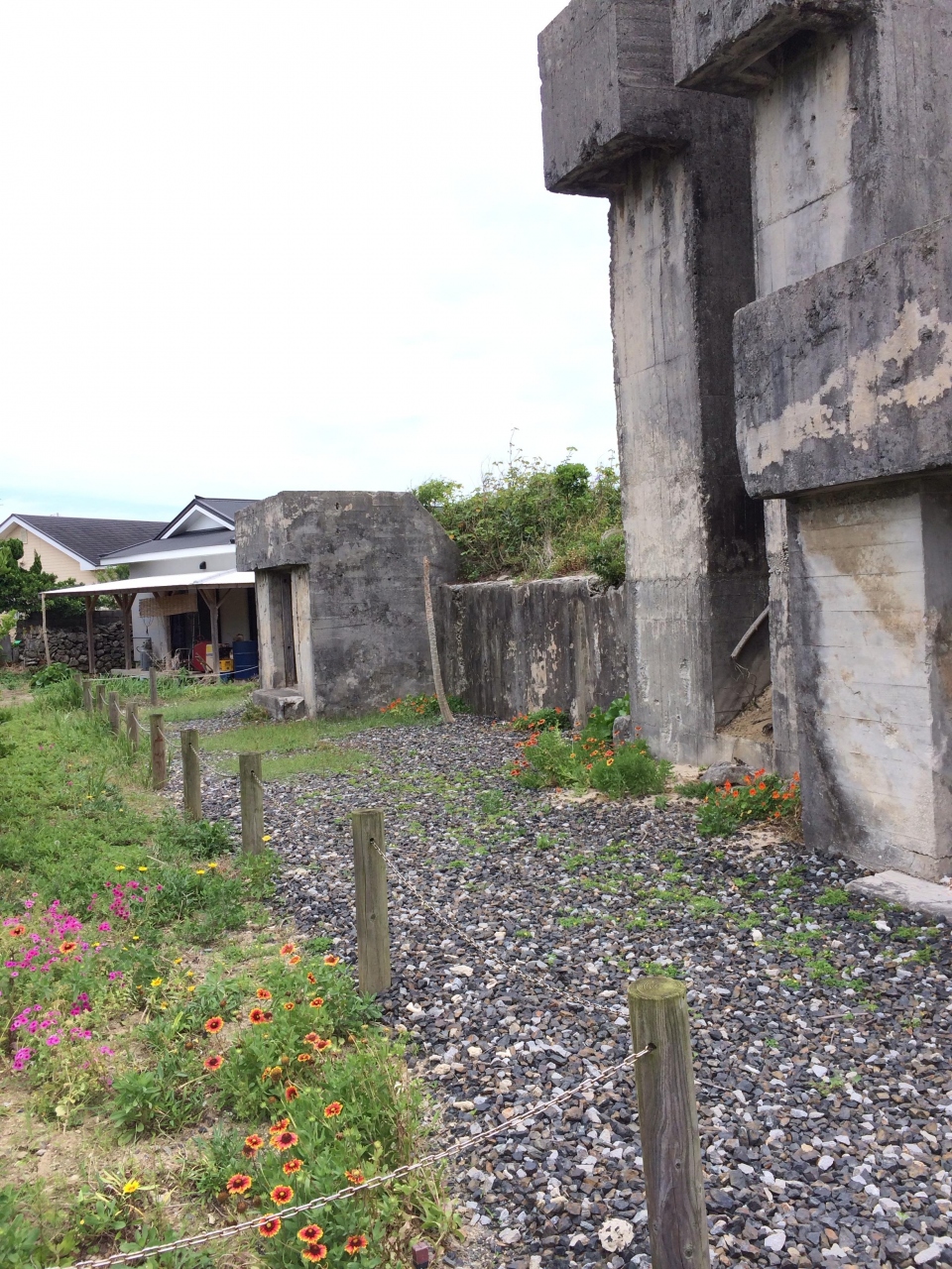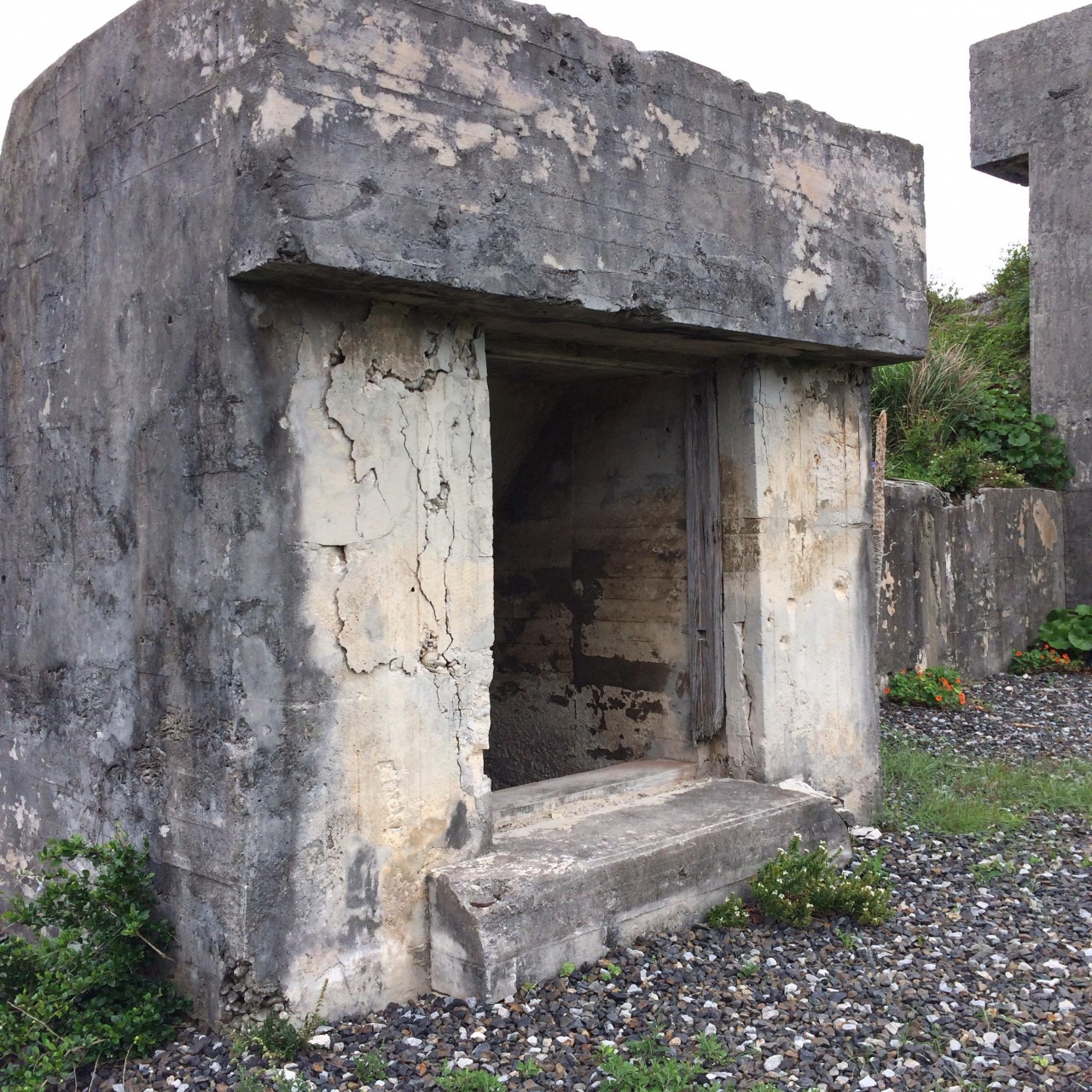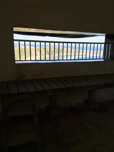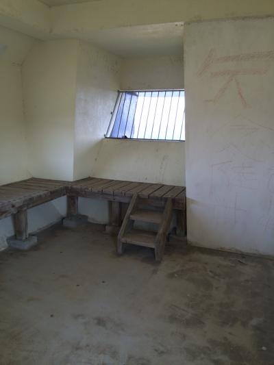 レンタカーを借りる際に、場所をお聞きして行きました。爆撃などによる破壊によって機能が麻痺しないようにH字の形に作られ、4つの出入口が現存します。いつ作られたかは軍の機密事項ということで不明ですが、70年以上の月日が経っているにもかかわらず保存状態は非常に良いもので、鉄筋が入っていることからも?にわか作り?ではないことがわかります。現喜界空港が海軍飛行場であったことから、喜界島は爆撃による被害が大きく、この?戦闘指揮所跡?も例外には漏れず、入口の一箇所ではその爆撃による破損を見ることができます。