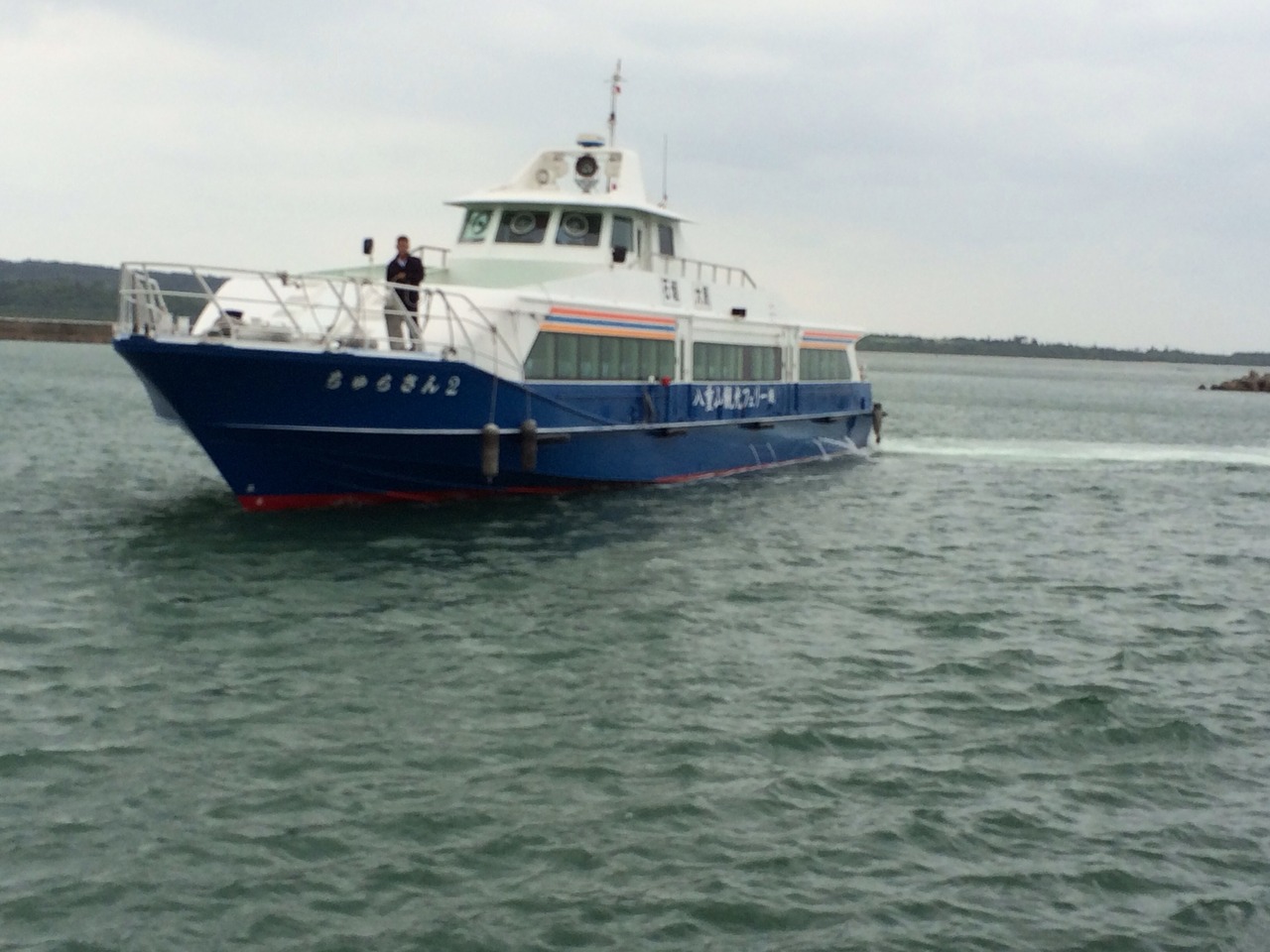 八重山諸島の島間移動では、安栄観光との共同運航のため、あまり意識しませんでした。今回西表大原から石垣への移動時に、上原線欠航の代行として使いましたが、すごい数の人々が待っているのを見て“乗れるかなぁ”状態のときにやって来た“ちゅらさん2号”に乗りました。約90名の定員の高速艇が多いなか、150名定員の大型船の三列シートを独り占めして帰って来ました。島宿続きで疲れているときに大変ありがたかったです。三社三様の営業形態ですが、今後も八重山旅行の立役者であり続けて頂きたいと思います。
