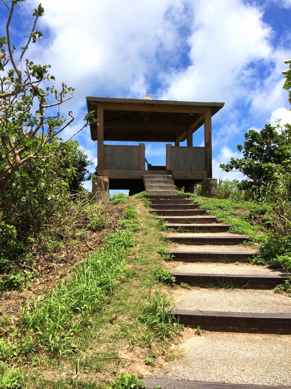 大岳の西側に位置する西大岳の頂上にある展望台です。高さは隣の大岳に比べるとかなり低いですが、西側に広がる景色は素晴らしいです。ヨナラ水道を挟んで位置する西表島に落ちる夕陽も勿論きれいですが、今は閉鎖されてしまった「ちゅらさん展望台跡地」が肉眼でも見ることができ、当時を想うことができます。登山口に車を止めることはできなくもないですが、道幅が狭いため、車の方は「大岳駐車場」に停められた方が良いように想います。体力的に「大岳登山」を諦めた方も是非行ってみて下さい。