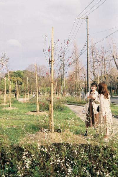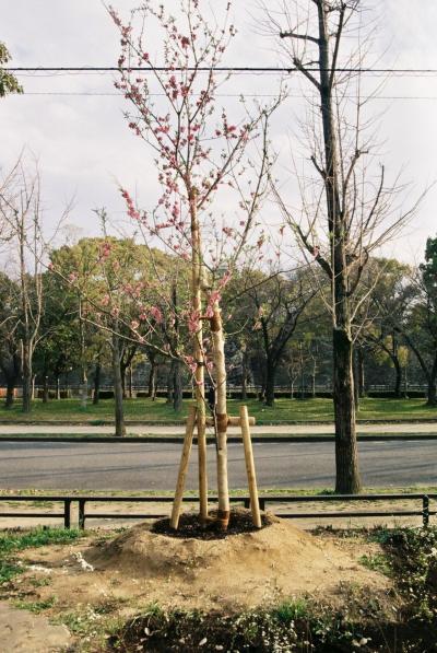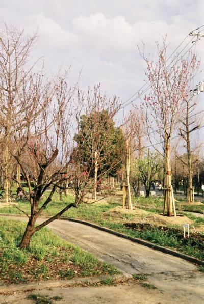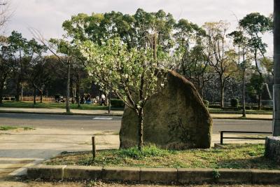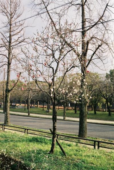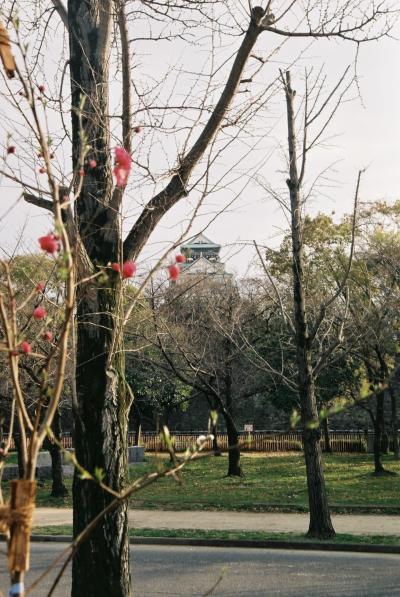 大阪砲兵工廠跡地で大阪城外堀の周りを周回している道路沿いにありました。時期的に桜には早く梅には遅いという理由で立ち寄りましたが、桃の花もまだ見頃には程遠いように見えました。
