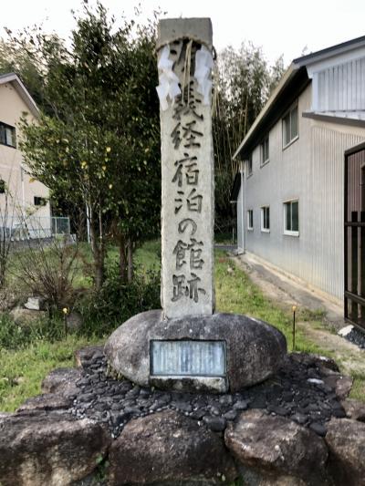 鞍馬寺を脱し奥州へと向かう途中だった牛若丸は、道中この地の宿駅の長(おさ)であった澤弥伝の〝白木屋〟の旅籠に滞在し、追手の目を欺くために髪を切って元服の儀だけを急ぎ済ませと伝わっています。その際烏帽子を織って貰った〝烏帽子屋五郎太夫〟の住居跡がこの場所だそうです。