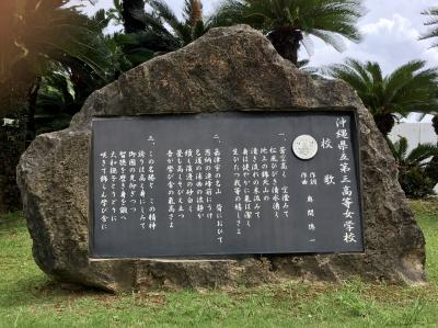 そんな中沖縄水産学校は沖縄水産高等学校として存続しており、同校同窓会が慰霊祭を行い現在に至っている。グラウンドの片隅に建立された翔洋碑。近くでは運動部生徒達の声が響き渡っていた。そんな当たり前の景色に溶け込んでいる翔洋碑。戦没した学徒隊員達の御霊が、一見平和に見える様子を見守っている様に感じた私であった。- 旅行時期