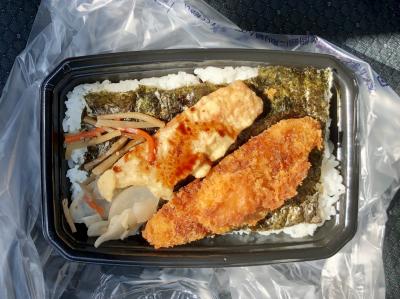 本家かまどや自体久しぶりだったので目移りするメニューでしたがオーソドックスにのり弁大盛りを注文しました。配達のオーダーがひっきりなしに入っていたようで少し待ちましたがまあ許容範囲。ウェルシアでお茶を購入し車の中で美味しく頂けました。