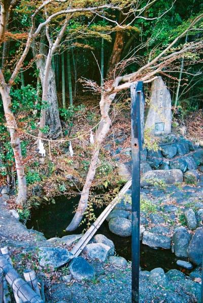 道の駅竜王かがみの里向かいにある源義経の元服池。出家を理由に鞍馬山に預けられていた牛若丸が、奥州藤原氏の下へと向かう際に立ち寄ったのがここ東山道鏡宿であった。宿滞在中に牛若の出奔を知った平氏の追手が近付いていることを知り、急ぎ鏡神社に湧く清水を盥に汲み、急仕立ての烏帽子をつけて〝減九郎義経〟を名乗り、元服の儀を行った場所と言われている。