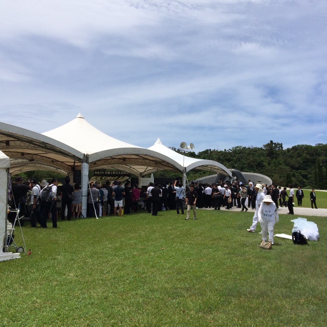 5年連続となる沖縄戦全戦没者追悼式に外野参加しました。30年ぶりに梅雨明けしていない慰霊の日でしたが、公式発表されているテント下に入っている参加者数は変わらないもの、私をはじめとする外野での参加者数は格段に少なかったはず。