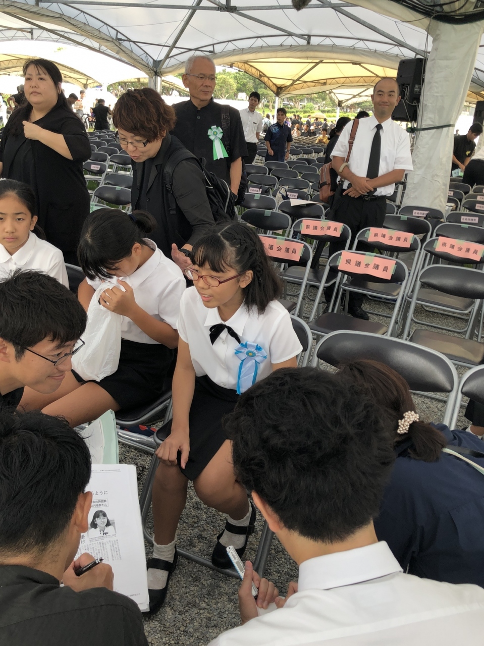 玉城知事のウチナー言葉と英語での平和宣言は彼の考えを示しており、また平和の詩を朗読した小学6年生の山内さんの心のこもった読み方は、少なくとも私の心を惹きつけるには十分過ぎるものでした。
