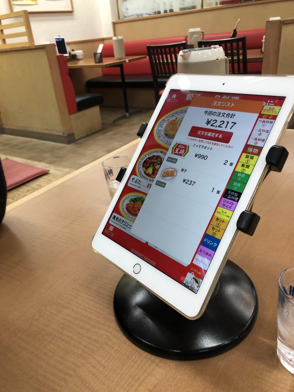 ドライブ帰りに夕食をとるために立ち寄りました。餃子の王将自体は行き慣れてはいますが、国道近江八幡店は初めてです。メニューに店舗限定メニューはあるものの多くは他店と共通メニューですが、オーダーがiPadで行うようになっていました。