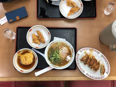 ラーメン・天津飯・唐揚げからなる〝こってりセット〟+餃子1人前を注文しますが、食べ慣れた味ゆえおいしく頂けることには変わりはありませんでした。