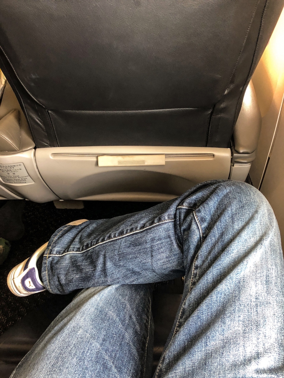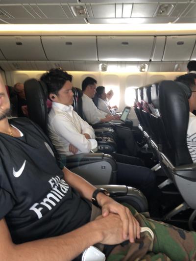 特に大柄な体型でもないのでシートピッチがどうのこうのはないものの前後座席のシートピッチが97cm、シート幅47cmの本革シートはやはり快適でした♪また最近ではLCCの利用が多いため、A320やA322、B738の200名の定員に満たない小型機だと関西那覇間のフライトでCAさん全ての顔を覚えてしまうのですが、さすが500席の大型機ゆえ今回さすがにそれは不可能でした。