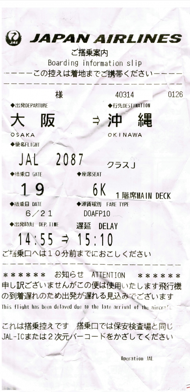 沖縄に行くのにマイルのフリートラベルで利用しました。9,500マイル利用でのClassJ、6Kの窓側席を確保しましたが、ツインクラスのJAL便はいつもClassJを利用してるもののワイドボディ機材での運航便では14年前に研修で沖縄に行った帰り道以来です。