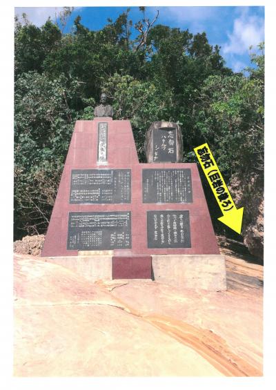 西表島南風見田の浜にある忘勿石は、先の大戦中に石垣島に駐屯した独立混成第45旅団の軍命により、この地に強制疎開を余儀なくされた波照間島民のうちマラリアに罹患して亡くなった児童66名を弔うべく、その疎開を引率した当時の波照間国民学校校長の識名信升氏が危険を顧みずして島民の窮状を旅団長宮嵜武之少将に直訴し、帰島の許可を得た際にその児童達の死を波照間島民に〝忘れることがないように〟との思いを込めて〝忘勿石 ハテルマ シキナ〟の10文字を疎開地であったこの地で入学式行った場所にあった砂岩の巨石に掘り込んだものになります。