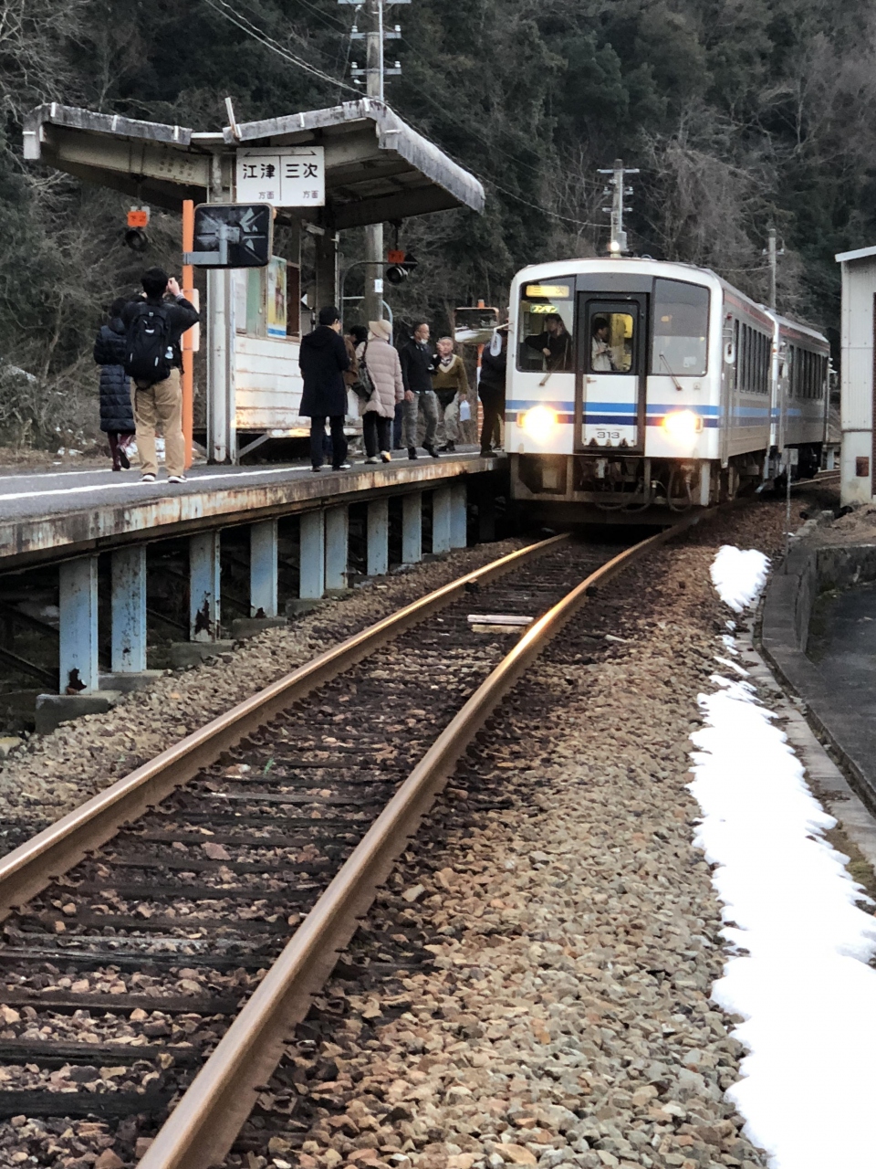乗車率の低迷から三江線の廃止が決まり、最後に記念の乗車をしようと人が集まるも、一番乗車率が高くなる三次発の列車が折り返し運行となるため、全線乗車をするのに妨げになっていました。
