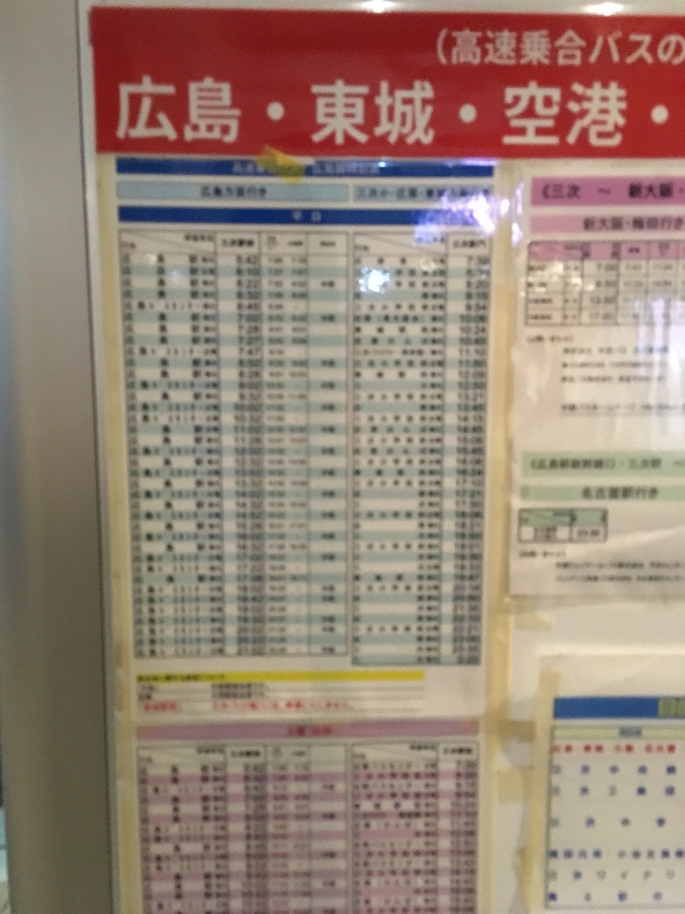 当初の予定を変更し広島から夜行バスに乗るために利用しました。三次・東城から広島までは圧倒的にバスの本数が多いため大変便利です。JR芸備線利用と時間や運賃も変わらないため、広島バスセンターを利用するならば更に使い勝手も良くなります。
