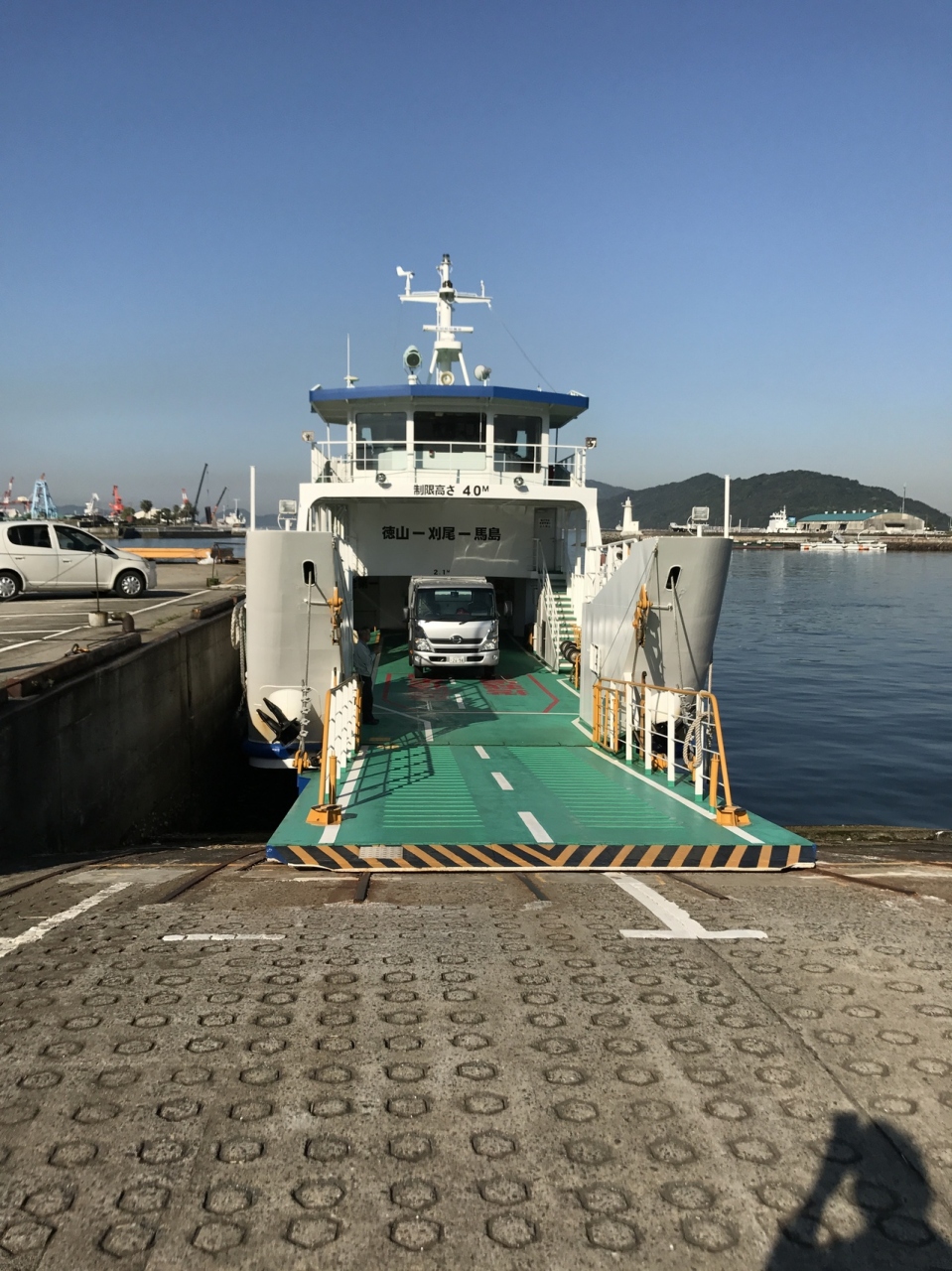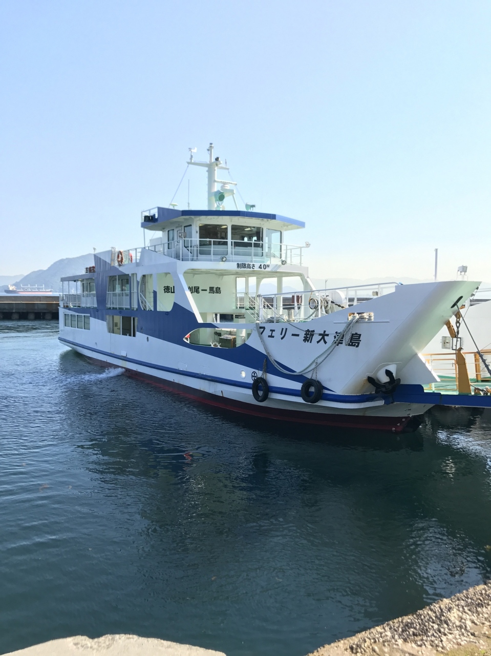 徳山駅から徒歩数分のところにある徳山港から大津島の4つの港をフェリーと高速艇で結んでいます。徳山発朝一便はごみ回収車等の公共サービスに関する車両が多く乗り込みます。