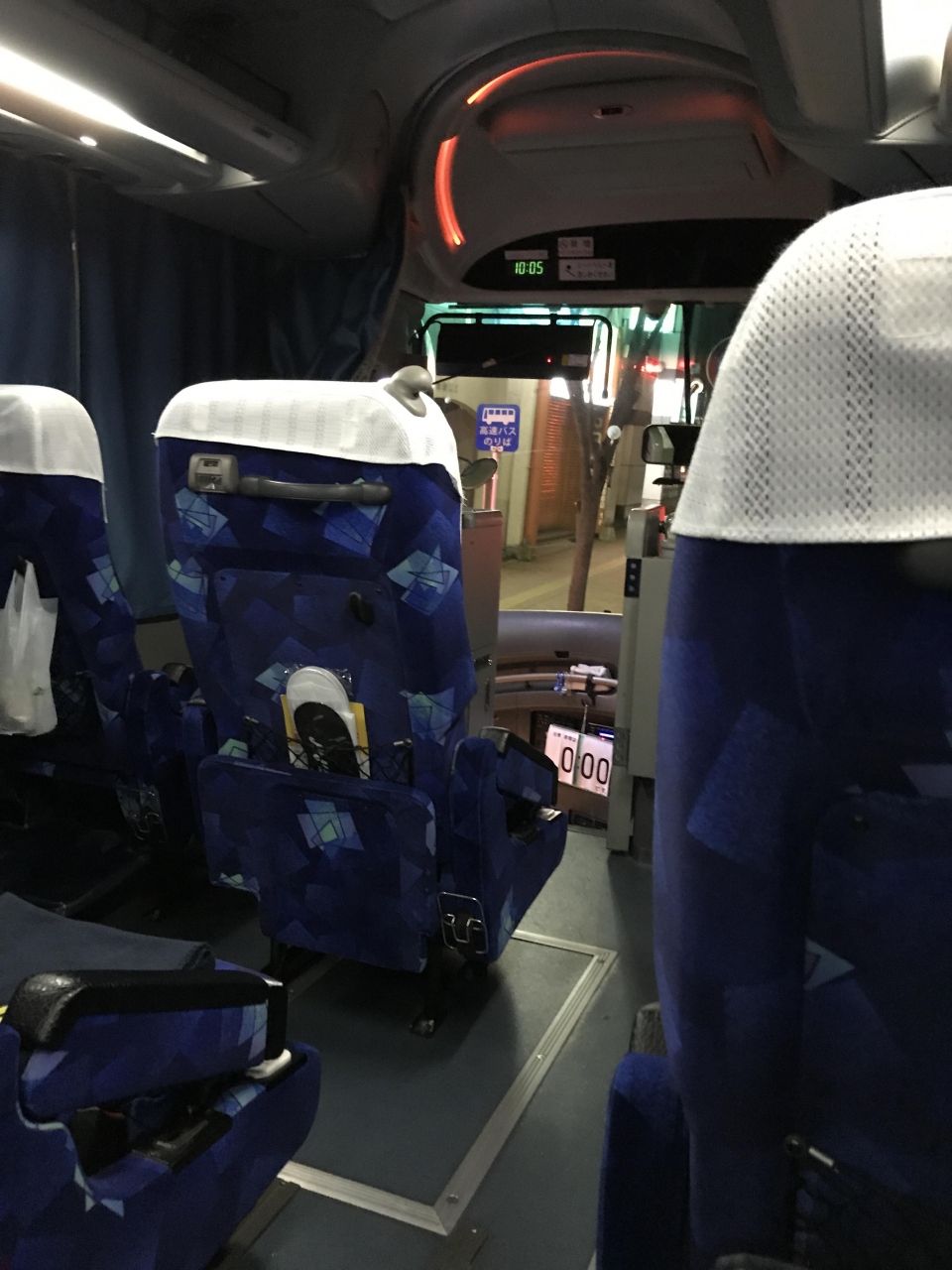 ツアーバスには乗らないつもりでしたが値段に惹かれて広島からの帰り道に数年ぶりに利用しました。車両は前方3列と後方4列の〝コンビシート〟タイプのもので、3列ゆったりシートを利用したこともあり、ほとんど他社の3列シート車両との違いは感じませんでした。シートは幅・全席とのピッチともゆったりしており、加えてコンセントもついているため快適にバスの旅ができます。