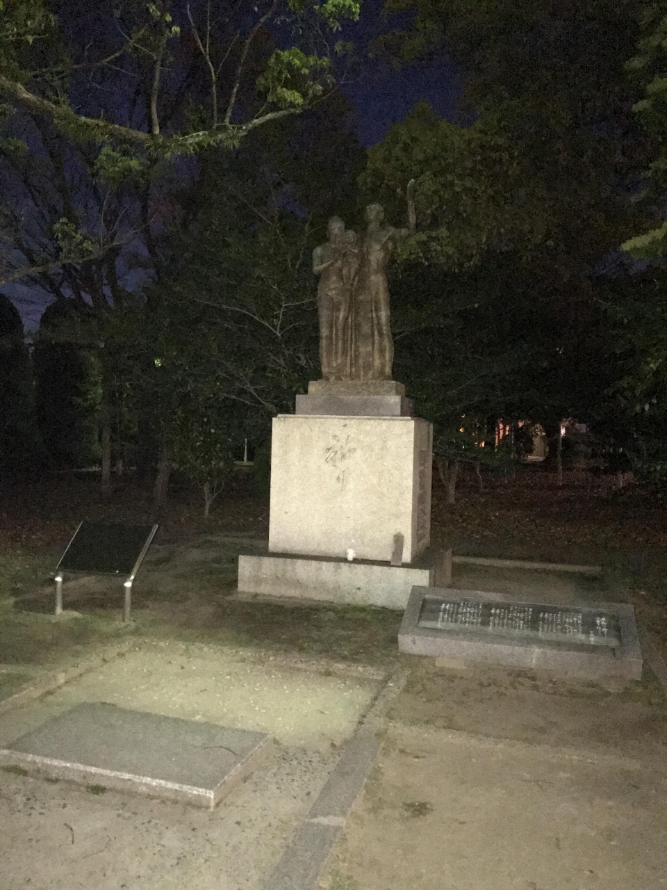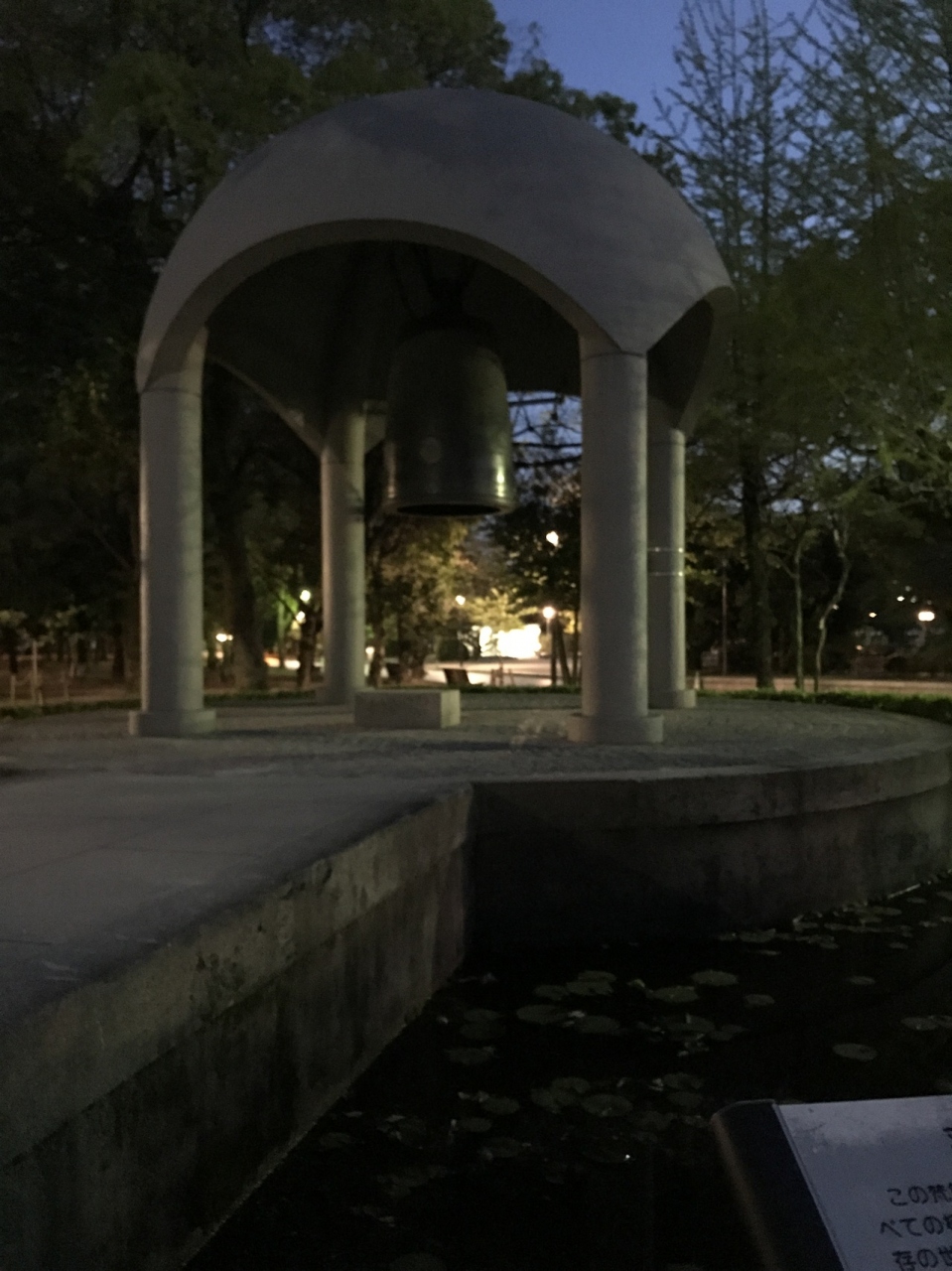 シンボル化するとなにもかもが抽象化されてしまい、建立意図を知るのに頭をひねらないとわからないものが多々ある中で、平和の鐘は大変わかりやすいものになっています。19:00を過ぎていたため、鐘を突くのは非常識なのでやめておきましたが、機会があれば実際に突いてみて、自分の心と向き合ってみたいと思います。- 旅行時期