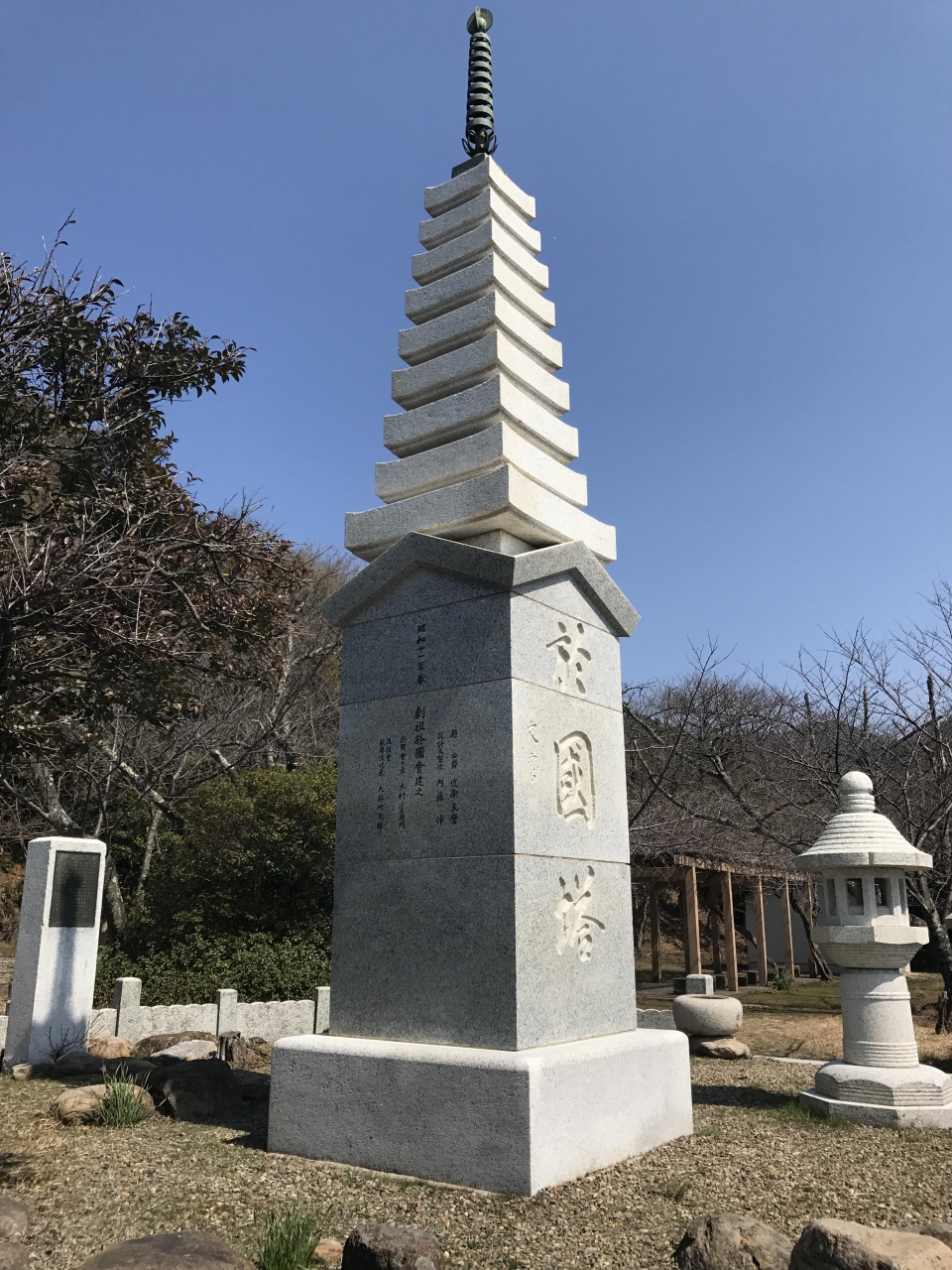 出雲阿国の墓から稲佐の浜方面に向かってすぐの右手にあります。入口には〝出雲阿国終焉之地〟と刻まれた石碑が、中腹には阿国を崇める著名人達が建立した〝於國塔〟があり、山頂には手斧神社と展望台があります。